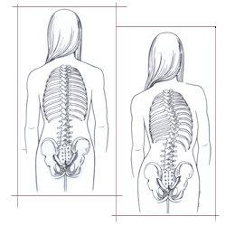 Since both types can be associated with arthritis, many patients will have back pain and muscle fatigue, as well as possible leg pain. Larger curves (over 40 degrees) should be checked periodically for increases in curve size. Worsening of the scoliosis will cause loss of height along with the other symptoms previously mentioned. Evaluation of the process involves the use of regular x-rays, MRI scans and possibly CT-myelograms. These studies help identify stenosis and other abnormalities in the spine and around the nerve roots and spinal cord that may be associated with the spinal deformity.