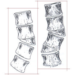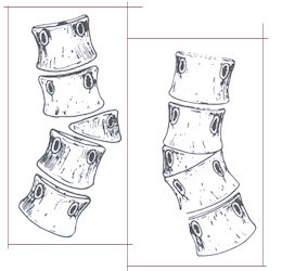 These are spinal deformities-scoliosis (side-to-side) or kyphosis (excessive round-back)-that are caused by abnormally formed or joined vertebrae, which an affected person is born with. The type of deformity that is seen depends on which direction and where the abnormal vertebrae are positioned within the spinal column. The normal spine should be straight when viewed from behind.