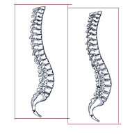 When viewed from the side, there should be a gentle roundback (kyphosis) in the thoracic (chest part) spine and lordosis (swayback) in the lumbar (lower part) spine. Scoliosis or increased kyphosis or lordosis are abnormalities and in congenital cases are caused by asymmetric growth of the abnormal vertebrae.